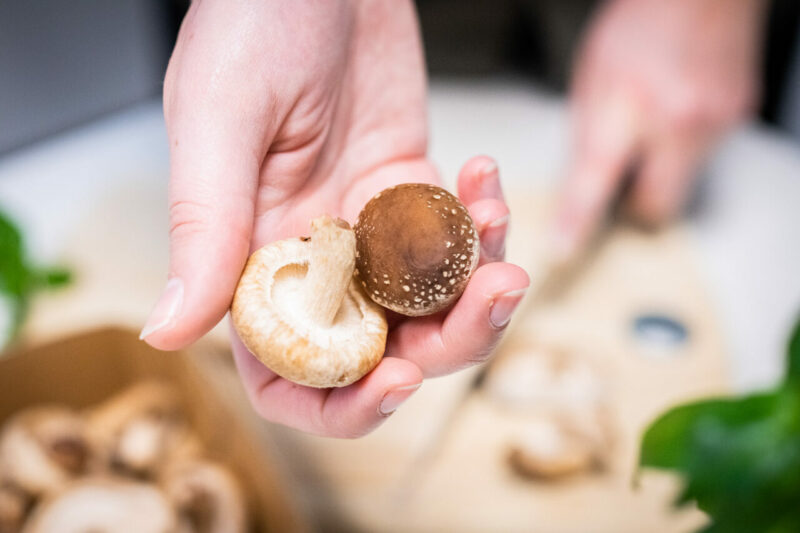 - Der Stiel des Shiitake kann holzig wie bei Spargel sein